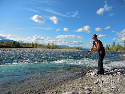 Setting up camp by the light of the moon in a city park, tucked just inside a small patch of bushes, we thought we would sleep tight. 3:30am, a sprinkle of liquid hits our tent, similar sound to someone/something peeing on our fly. Maybe a spit of rain? Hopefully not a grizzy. Hopefully not wolves marking their territory. I freeze and my stomach turns to knots as my imagination turns to the worst. 10 minutes later, staying as quiet as possible, spit spit spit spit spit spit spit.....faster and faster. Ryan cracks up as the sprinklers shoot right at our tent. Thank goodness for our new fly! It lasted about an hour, every 5 minutes hitting the tent.